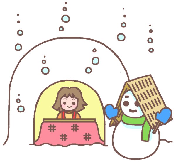 かまくらの中に、コタツや火鉢を持ち込んで友達と遊ぶのが一般的な楽しみ方ですが、雪の壁によって外気を遮断しているので、暖房は灯りのロウソクで十分暖かいです。かまくらの中で火をおこす場合は、天井に傘などで小さな穴を開けておくと煙突の役割を果たします。かまくらを使わない時はビニールシートをかぶせておくと長持ちします。