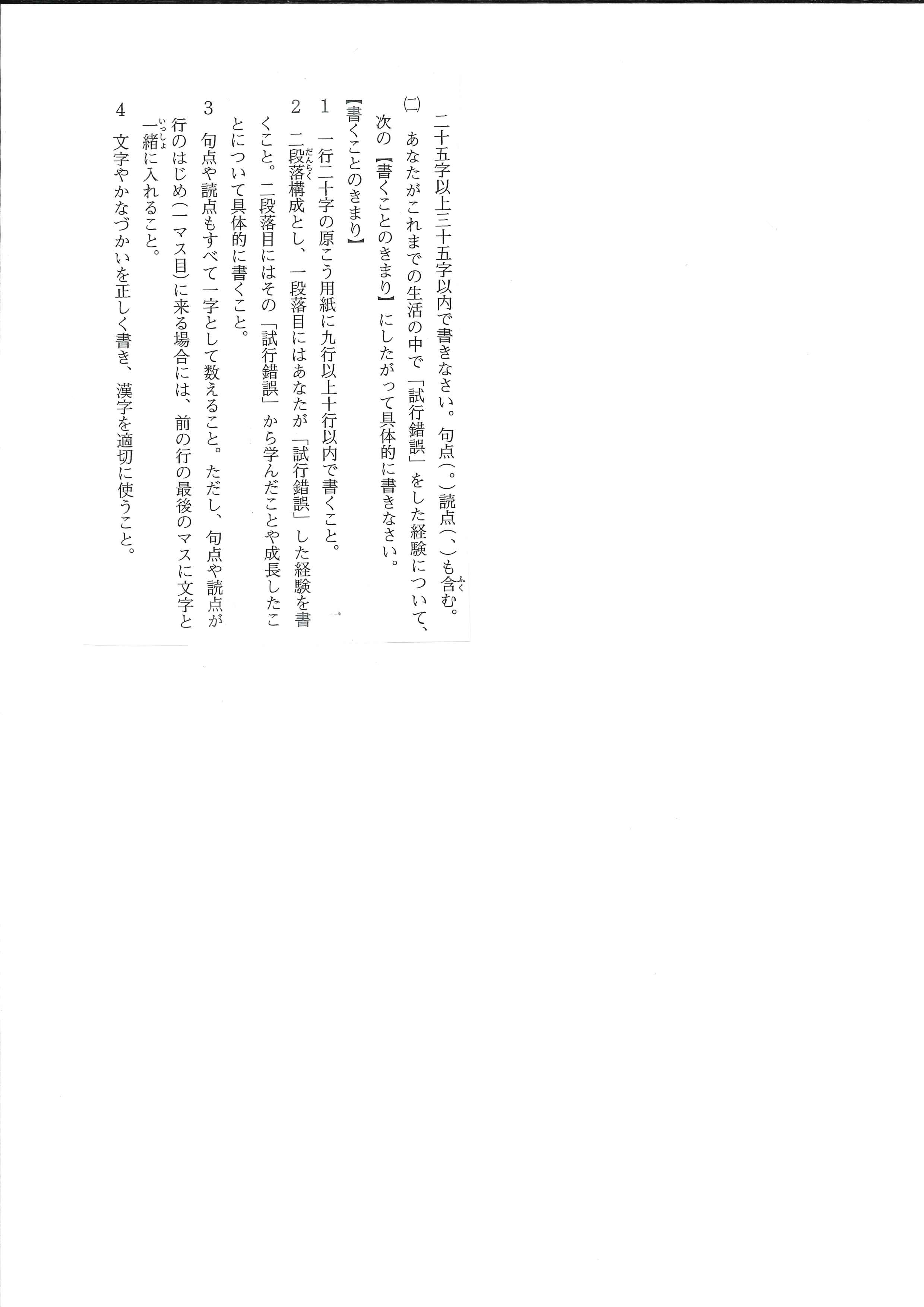 第一段落は説明。「現在の社会は、教育環境が整っているために、子供のころから勉強に追われるような面も出ている。しかし、子供は遊びを通して成長する。私の経験で考えても……」など。