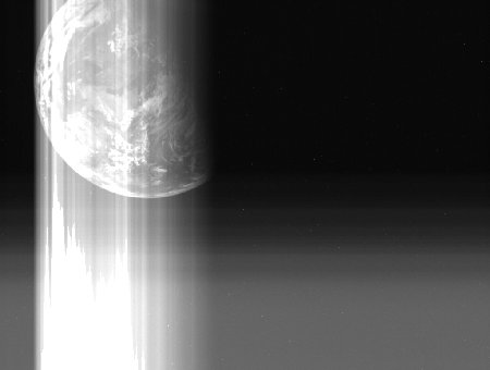 (写真は、小惑星探査機「はやぶさ」が燃え尽きる前に最後に写した地球の写真)
