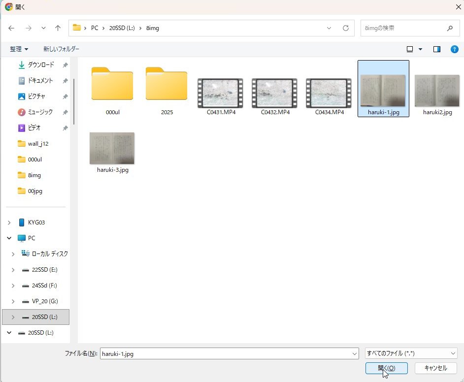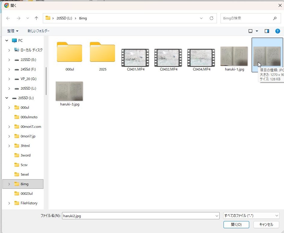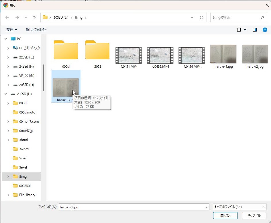 5.次に、もう一度、「ファイルを選択」をクリックして、3枚目を選択し、「開く」を選択します。