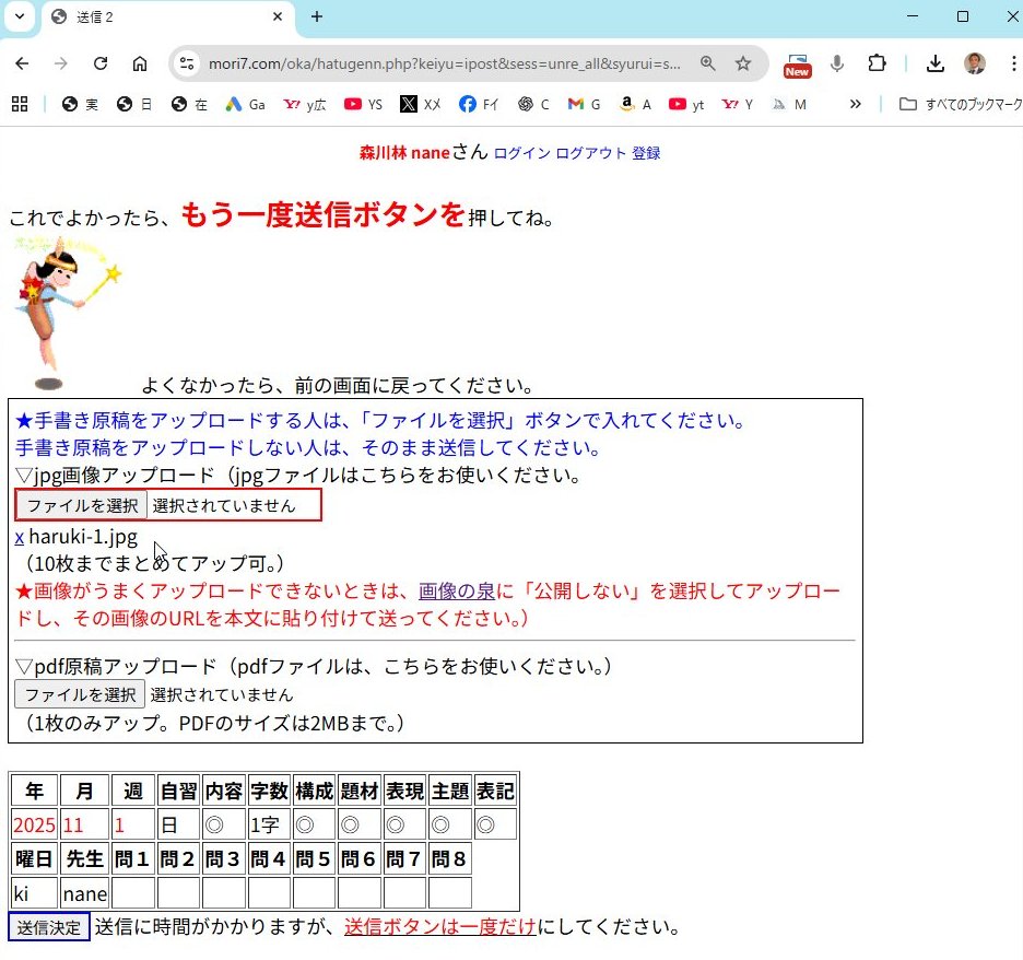 ※個別れんらく板などでは、複数枚をまとめて選択できますが、作文の送信ページはまだ1枚ずつ送るようになっています。