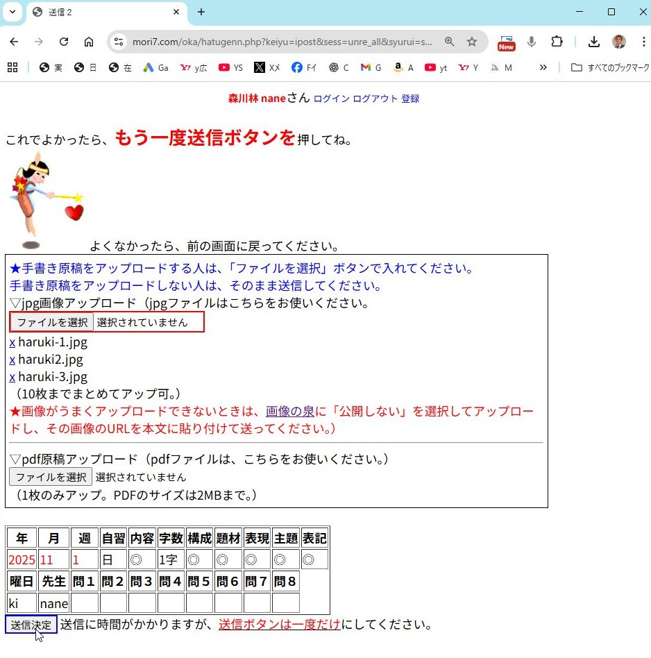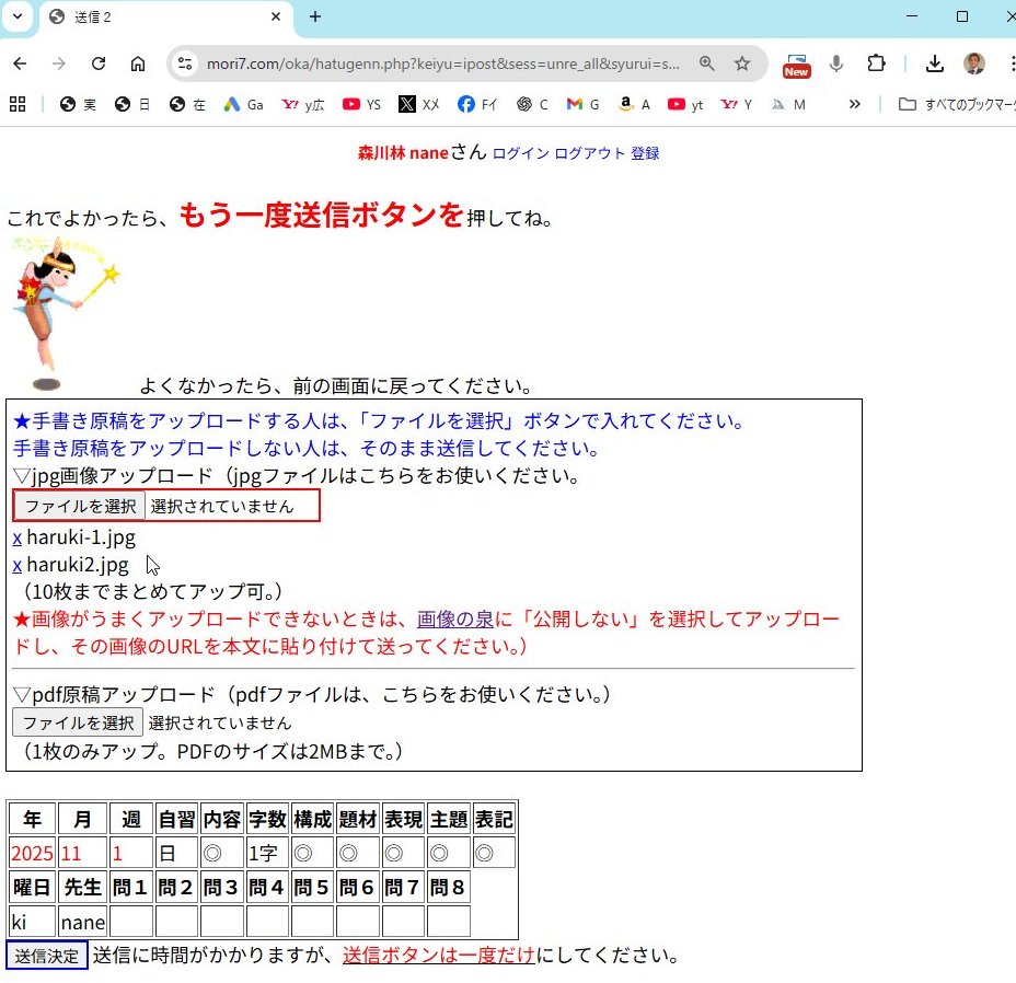 作文の画像の送り方(3枚送る場合) 森川林 20251029 に対するコメント