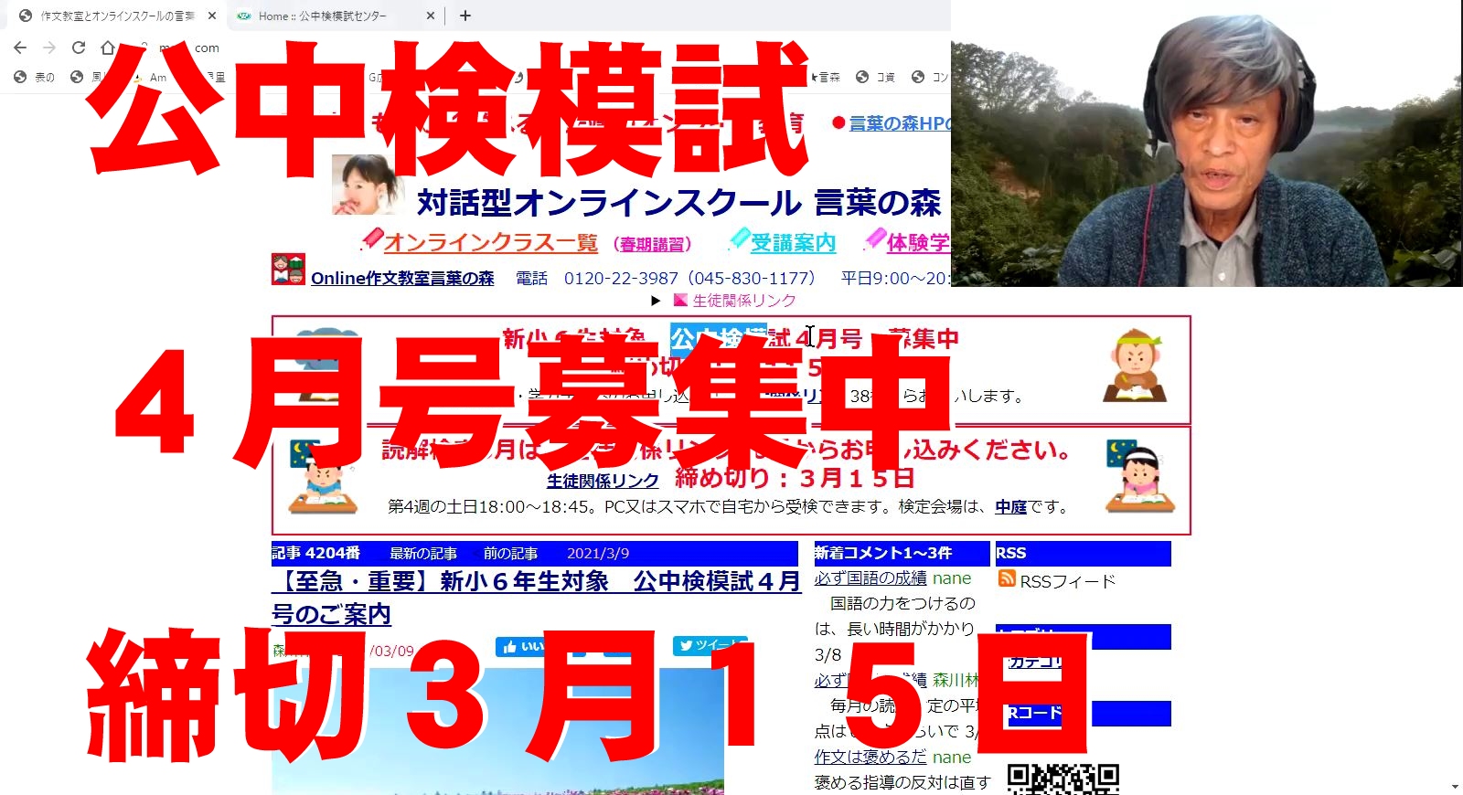 - 読解検定の解き方のコツを理解させるために、オンラインクラスで国語読解講座を開設した。