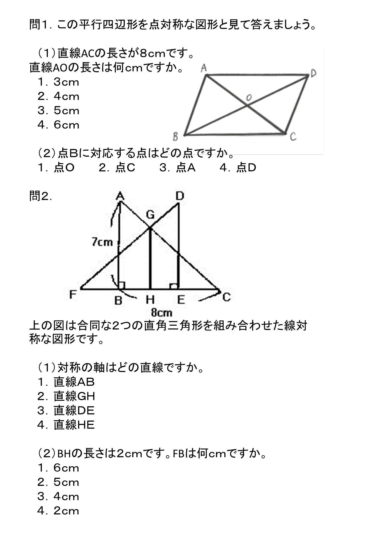 検定 7級/さ/7sa/【小6】「これでわかる」4章 対称な図形 1、線対称な図形 2、点対称な図形