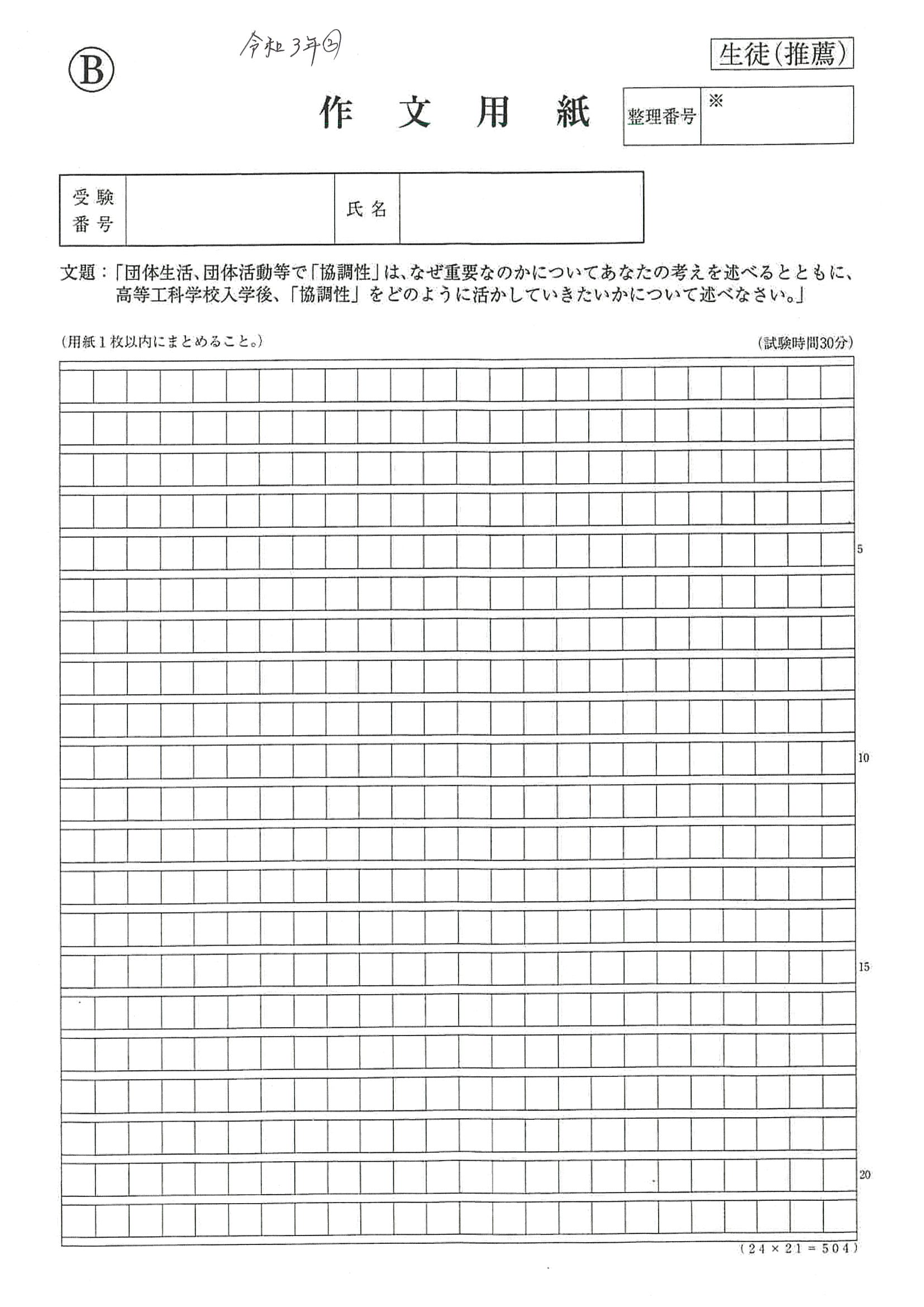 第一段落は説明。「現在の社会は、教育環境が整っているために、子供のころから勉強に追われるような面も出ている。しかし、子供は遊びを通して成長する。私の経験で考えても……」など。
