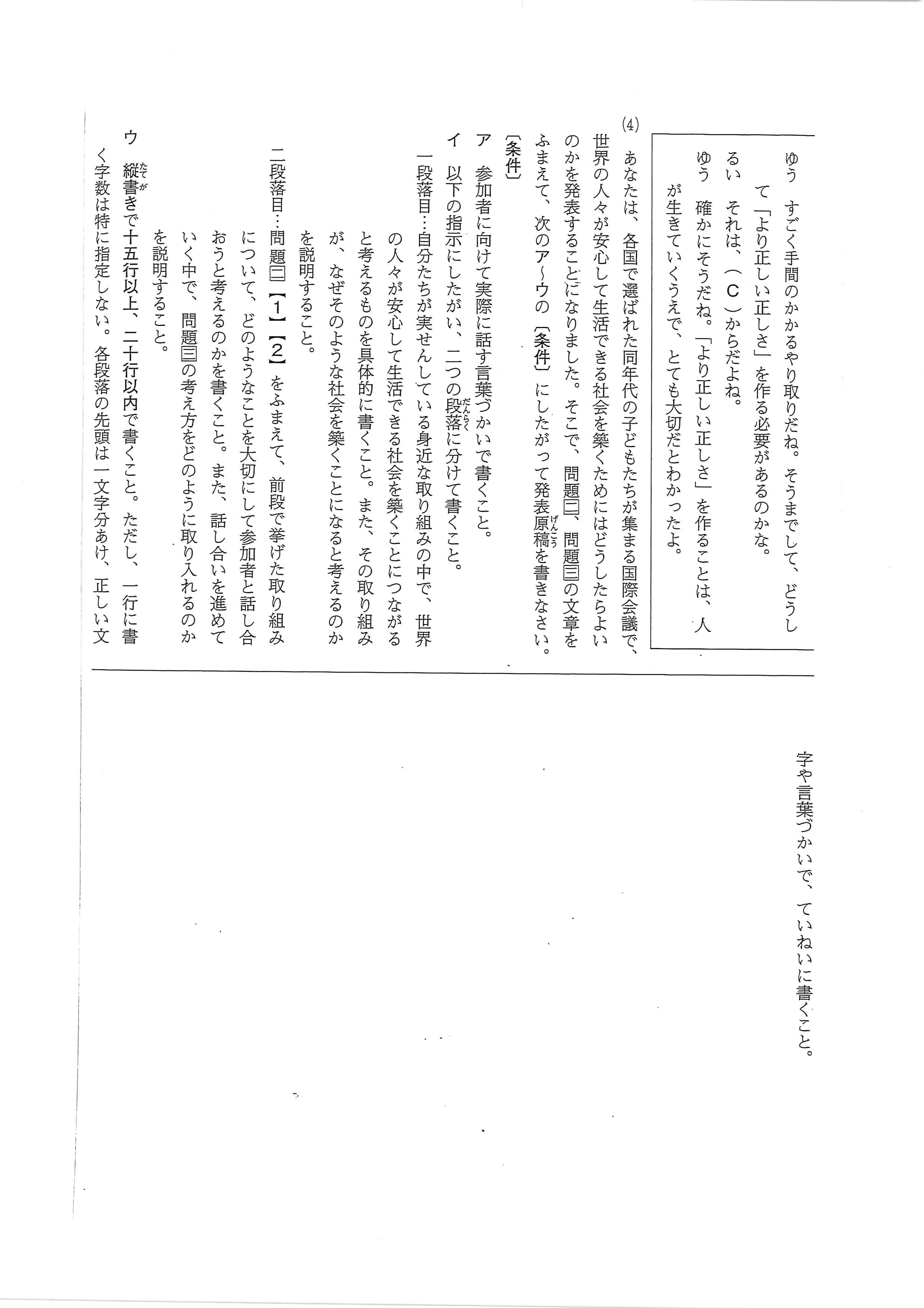 第四段落は、反対理解と総合化の主題。「確かに、子供時代には、遊ぶことも勉強することもどちらも大切だ。しかし、「子供は大人を小さくしたものではなく、それ独自の価値を持っている。」という言葉もある。一番大切なのは子供時代にしかできないことをたっぷりとしておくことである。」