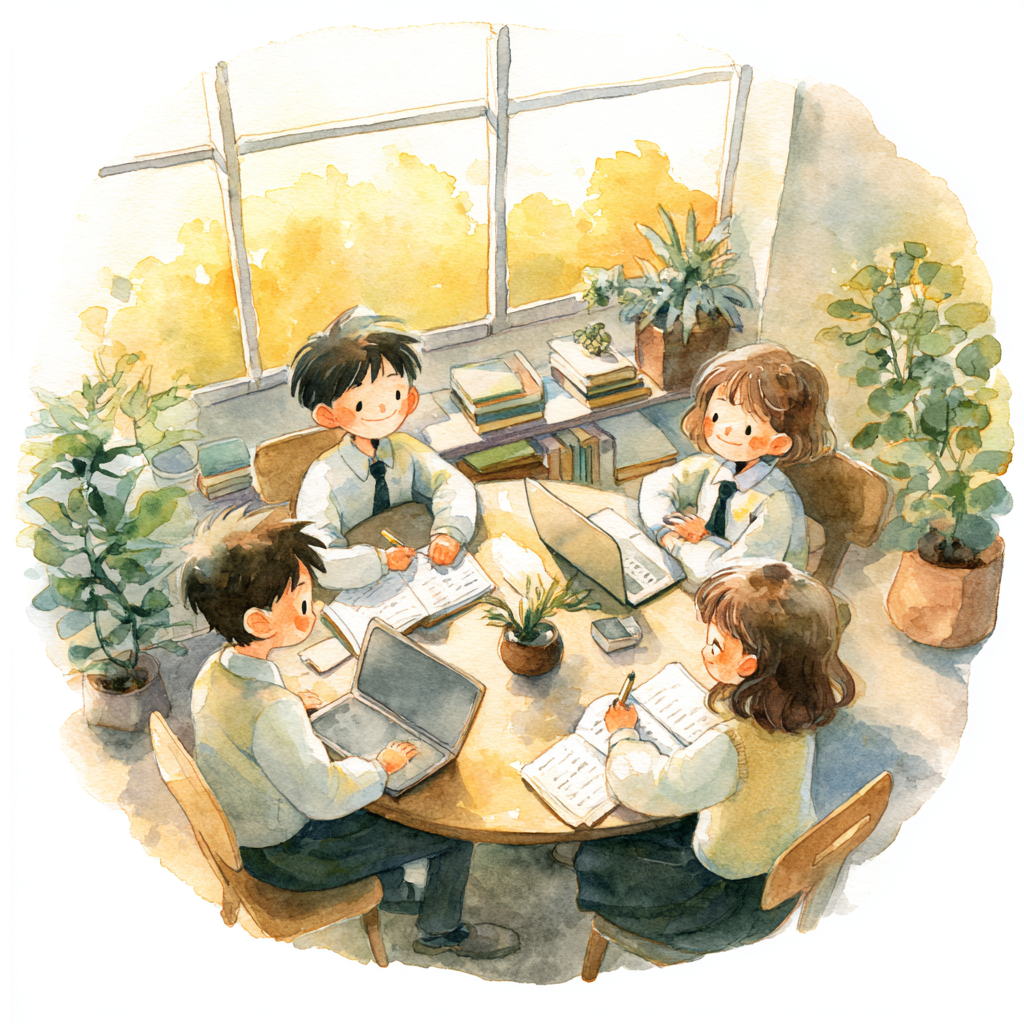 家庭で勉強を続けやすくするために、24時間オープンのオンラインの自習室をいつでも利用できます。