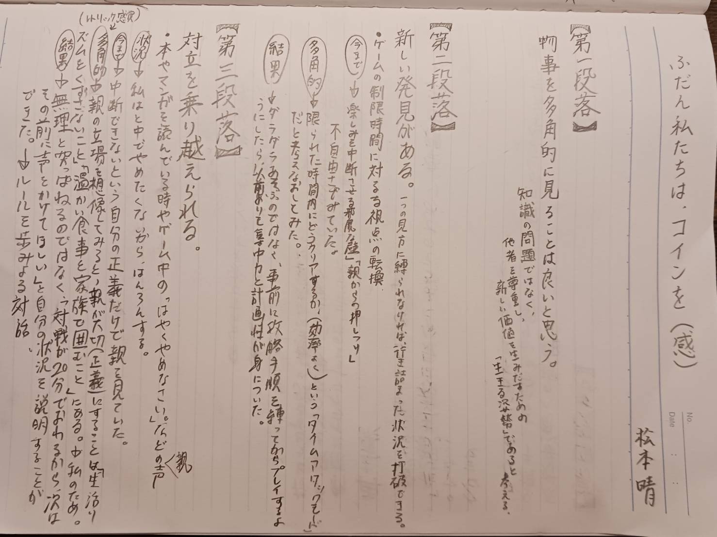 生徒が書いた記事は、参加者にはメールは行かず、記事が黒色の文字で表示されます。