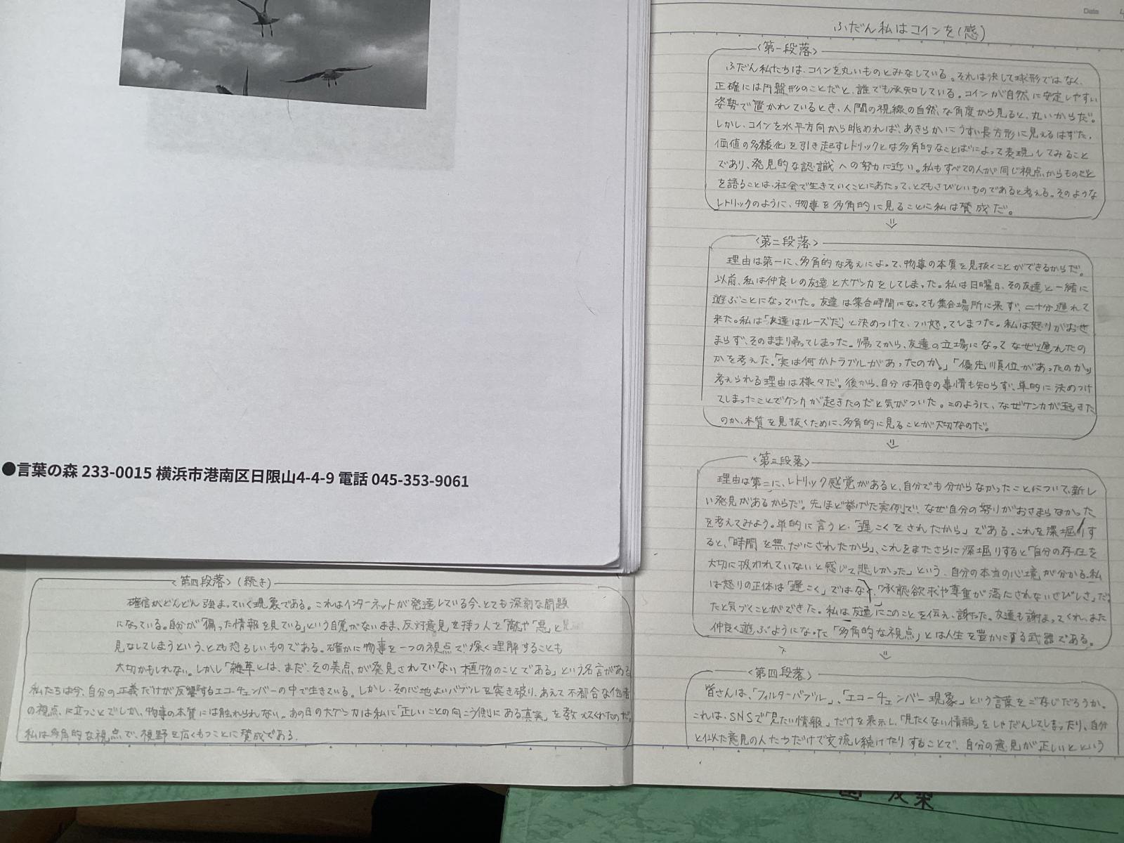 生徒が書いた記事は、参加者にはメールは行かず、記事が黒色の文字で表示されます。