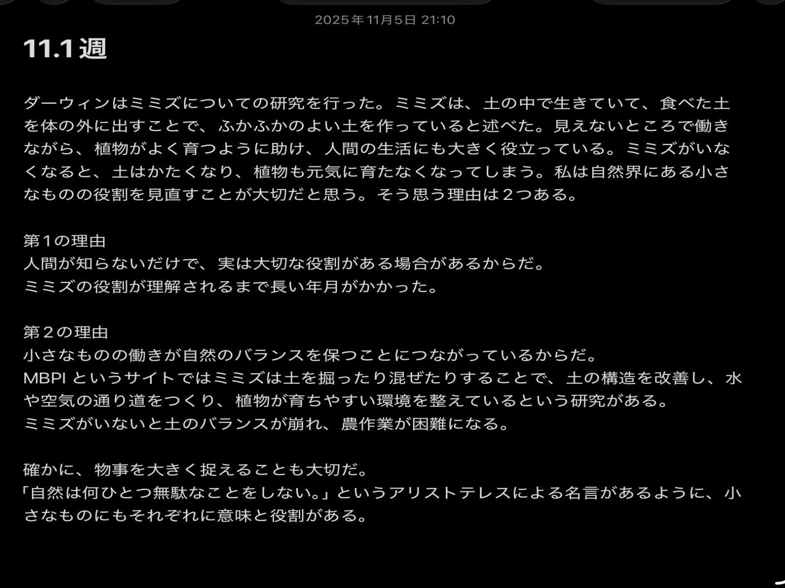 生徒が書いた記事は、参加者にはメールは行かず、記事が黒色の文字で表示されます。