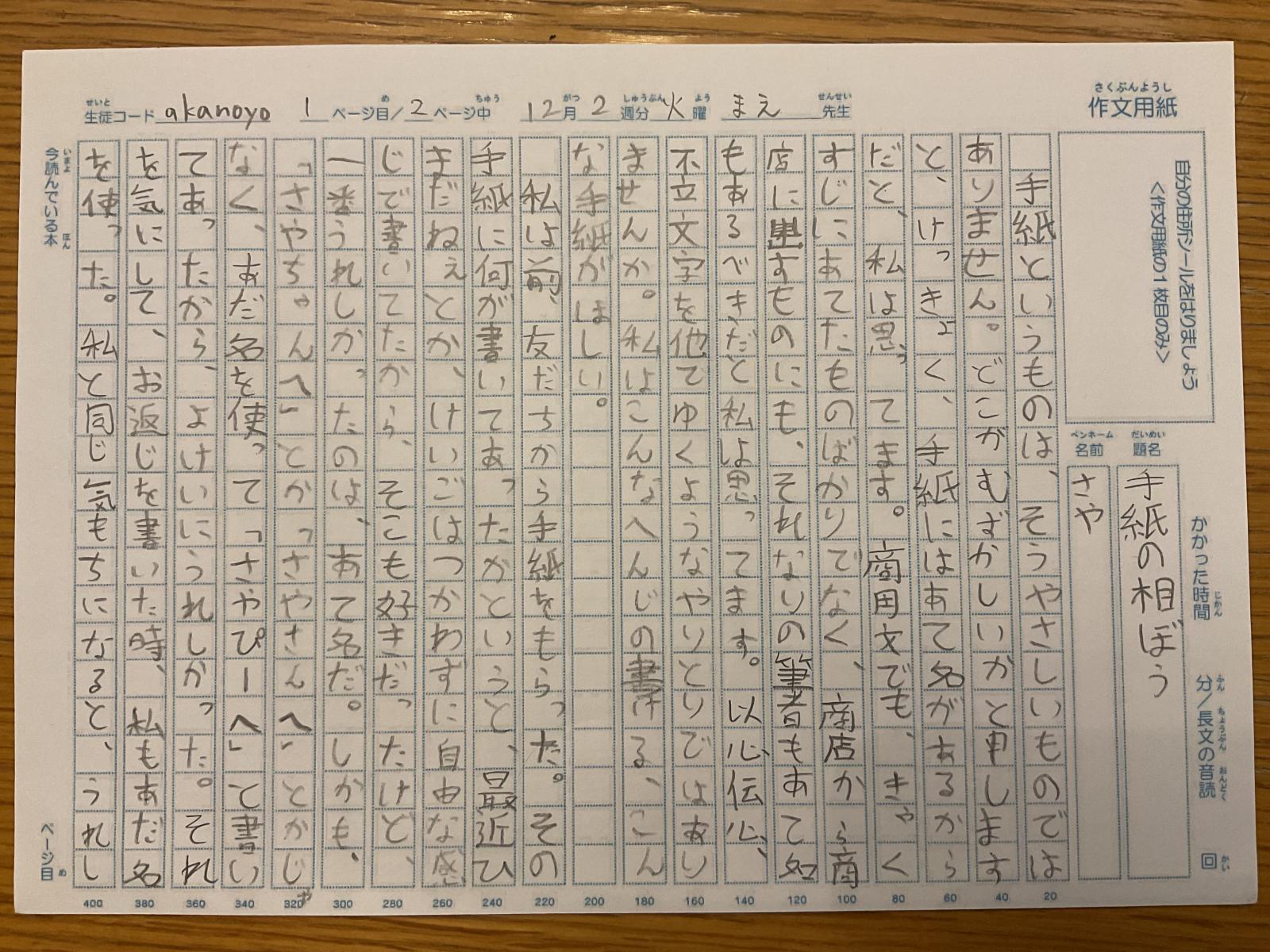 生徒が書いた記事は、参加者にはメールは行かず、記事が黒色の文字で表示されます。