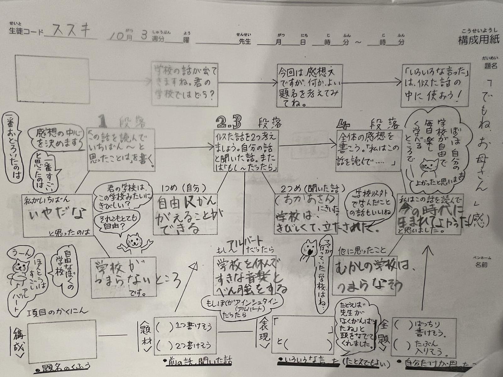 生徒が書いた記事は、参加者にはメールは行かず、記事が黒色の文字で表示されます。