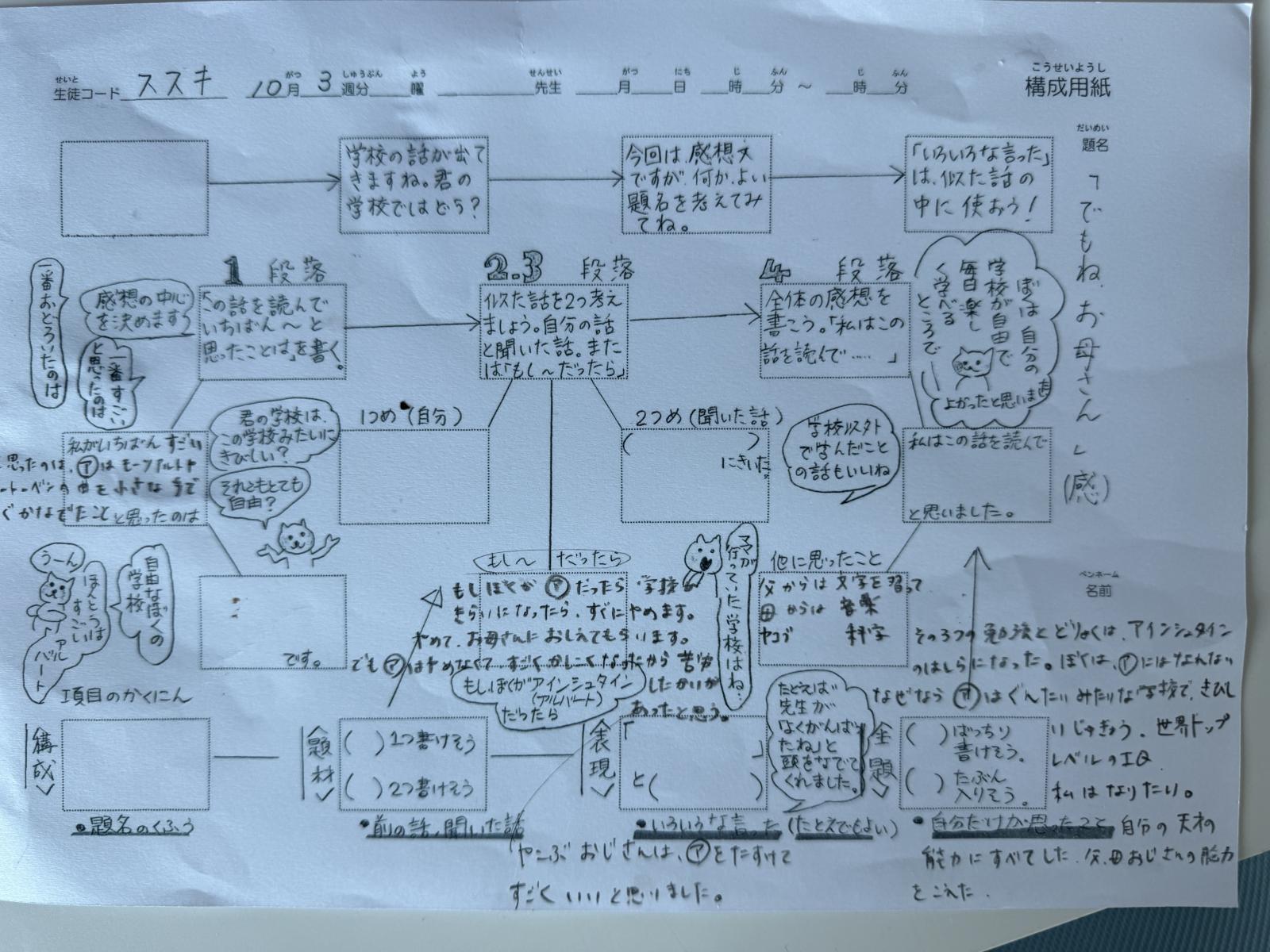 生徒が書いた記事は、参加者にはメールは行かず、記事が黒色の文字で表示されます。