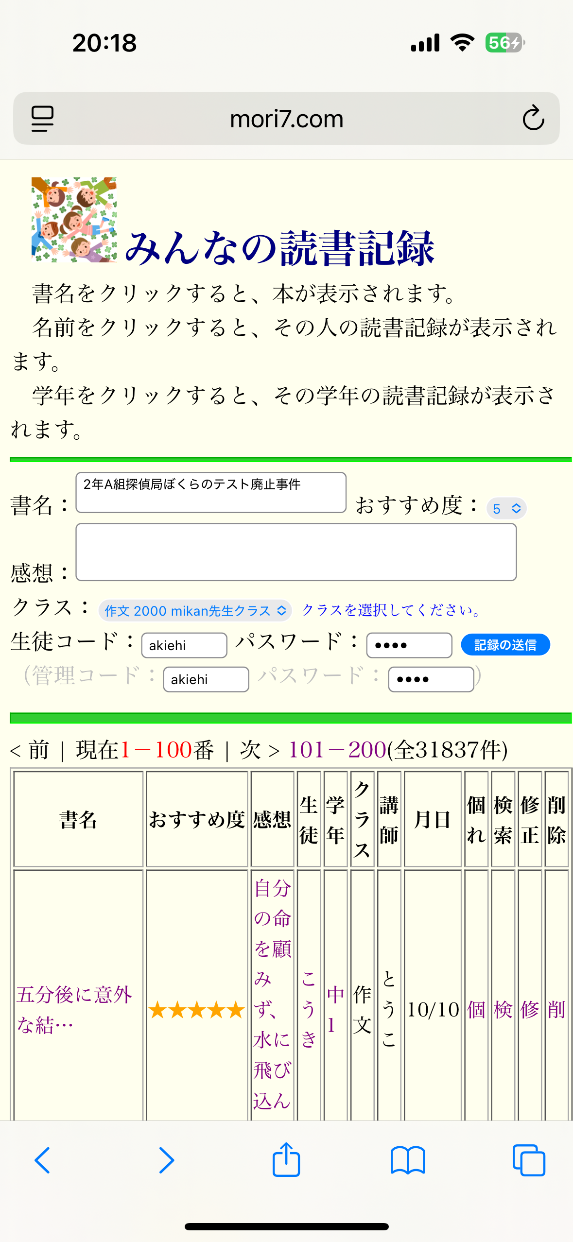 生徒が書いた記事は、発表室に表示されます。限定表示にすると、先生だけに表示されます。
