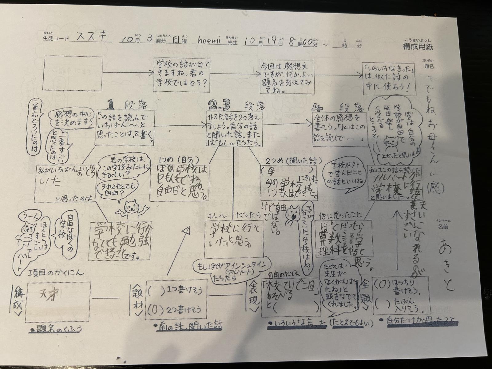 生徒が書いた記事は、参加者にはメールは行かず、記事が黒色の文字で表示されます。