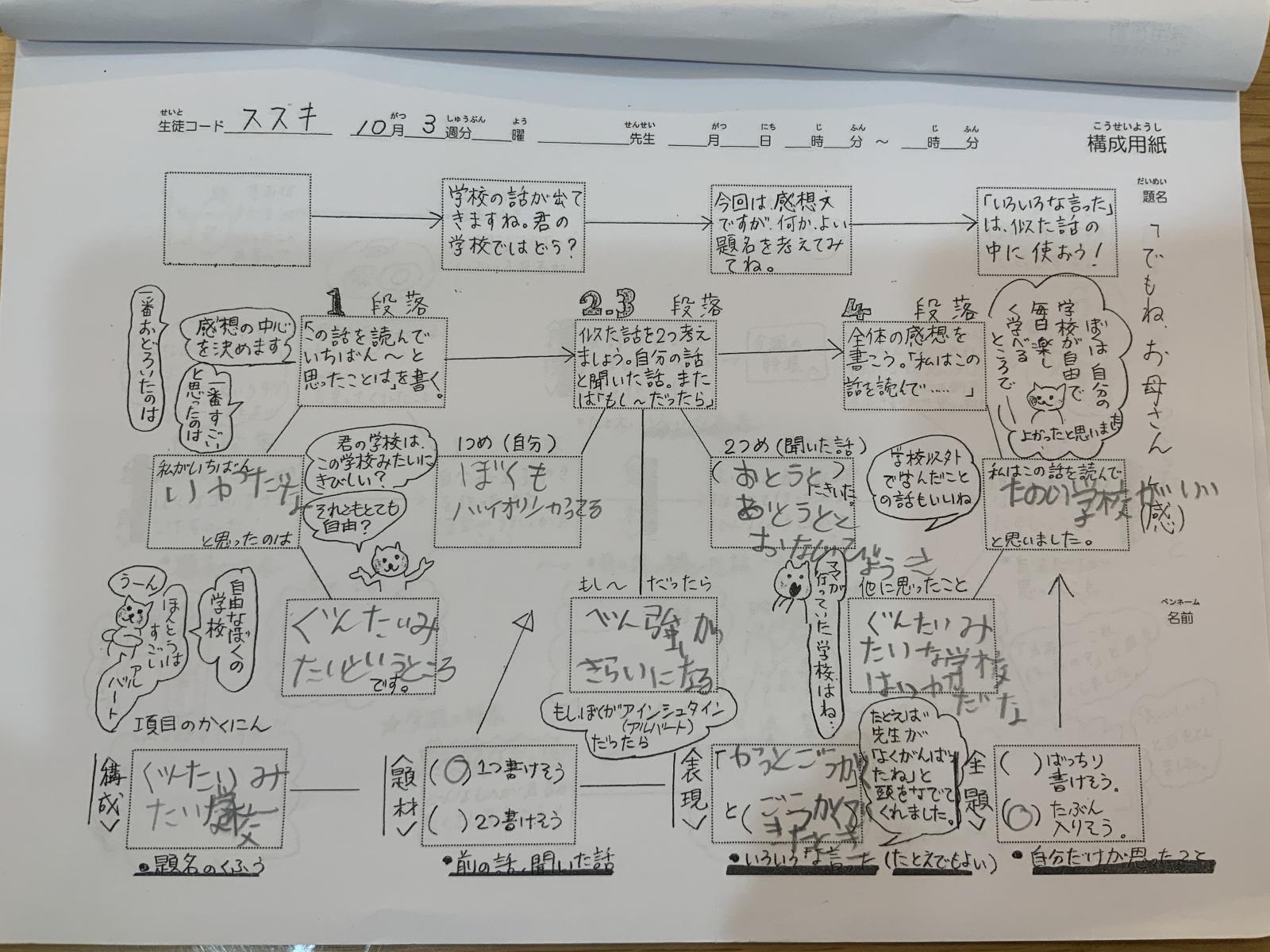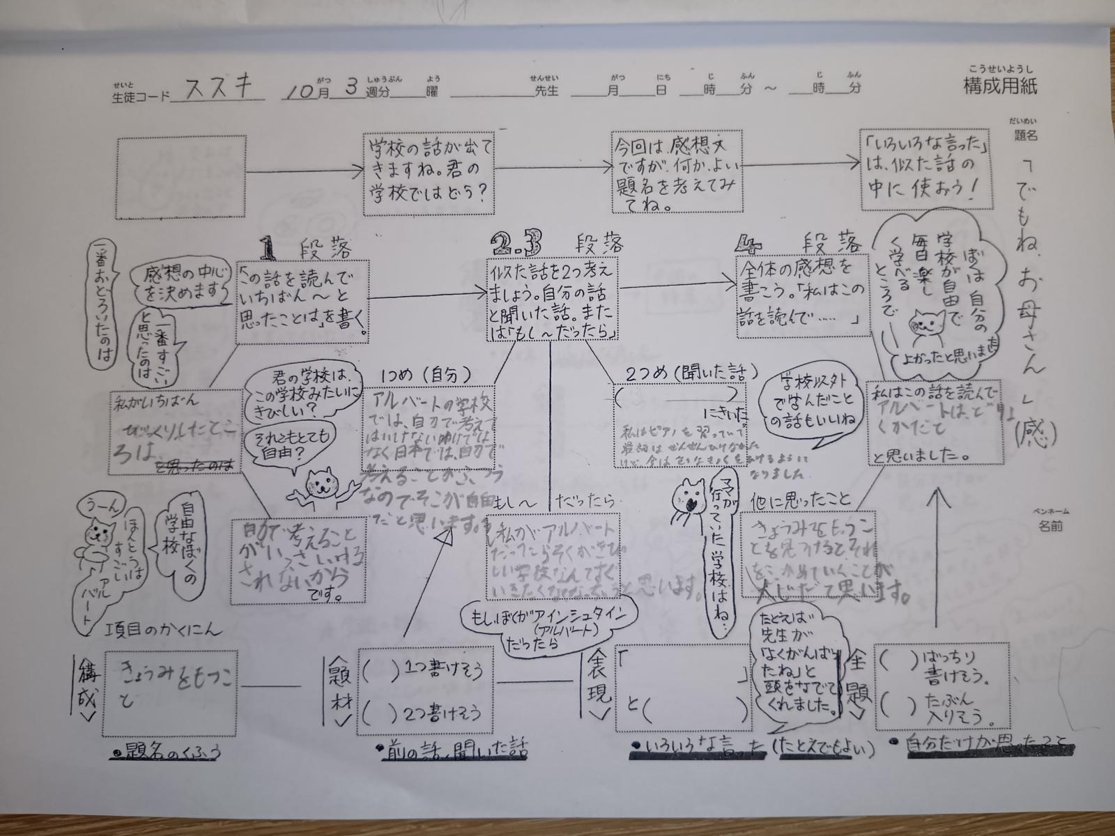 生徒が書いた記事は、参加者にはメールは行かず、記事が黒色の文字で表示されます。